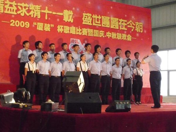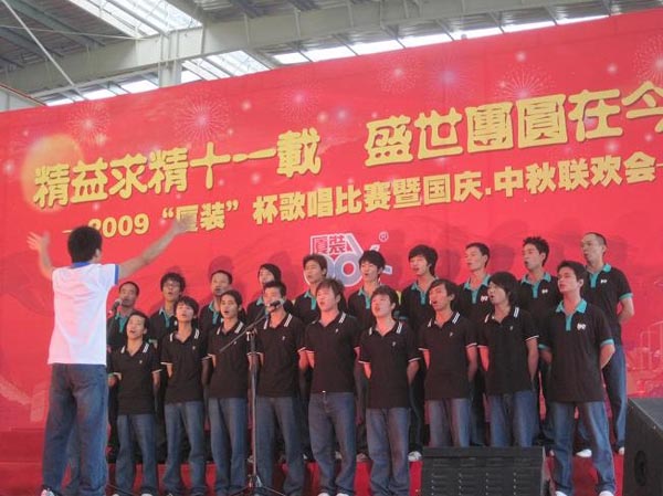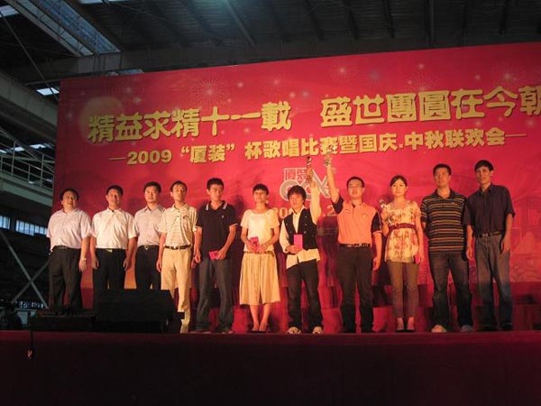 9月29日下午,2009年度“廈裝杯”歌唱比賽在廈裝公司總裝車間舉行。此次歌唱比賽以“精益求精十一載、盛世團圓在今朝”為主題,賀祖國60周年華誕、喜迎中秋、慶祝廈裝成立11周年。公司及各部門從6月份開始籌備此次比賽,此次比賽分為集體組和個人組,集體組(合唱)以部門為單位,最終有6支隊進入當(dāng)天的決賽,個人組通過先前的部門推薦及預(yù)賽選拔,最終有11人闖入決賽。
